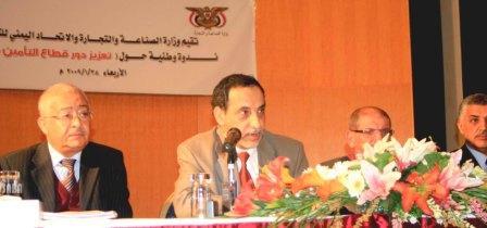 واعتبر الوزير المتوكل عدم توازي النمو في قطاع التامين مع النمو الاقتصادي مؤشراً خطيراً يستدعي الوقوف امامه بجدية.. داعيا شركات التامين للبحث في تعزيز دورها ورفع نسبها في تحمل المخاطر وان لا تقتصر على عملية اعادة التامين.وشدد وزير الصناعة والتجارة على اهمية توعية افراد المجتمع بالتامين وفق برنامج محدد وواضح .. مؤكدا انه لا يمكن تحقيق اي تقدم ملموس في قطاع التامين لتحقيق نمو اقتصادي مناسب ما لم تتكاتف كافة الجهود من قبل الحكومة والقطاع الخاص.ولفت الى ان الشراكة والتعاون بين الحكومة والقطاع الخاص مدخل رئيسي واساسي لتحقيق التطلعات، والعمل سويا لمعالجة الصعوبات والمعوقات التي تعترض النهوض بقطاع التامين.من جانبه اعرب رئيس الاتحاد اليمني للتامين علي محمد هاشم عن تطلعه في ان تشكل هذه الندوة باكورة لنشاط جديد ومستمر في قطاع التامين.. مبينا ان التامين هو الضامن لحركة التجارة والصناعة والمواصلات والجوانب الصحية والاجتماعية.وقال» نتطلع الى ان يشمل التامين كافة الجوانب المتصلة بحياة المواطن في اليمن».وقدمت في الندوة خمس اوراق عمل، تطرقت الأولى الى التامين، الواقع والطموح قدمها رئيس الاتحاد اليمني للتامين، وأخرى عن مدى تاثر صناعة التامين في اليمن من الازمة المالية العالمية قدمها الدكتور شهاب المقدام، اضافة الى ورقة حول التامين الالزامي على السيارات الحاضر الغائب قدمها مدير عام الشركة الوطنية للتامين مجيب ردمان، ورابعة عن دور قطاع التامين في التنمية مقدمة من الدكتور احمد البواب، فيما الخامسة حول التامين الصحي الواقع والمأمول قدمها رئيس مجلس ادارة الشركة المتخصصة للتامين الصحي الدكتور عادل العماد.وركزت المداخلات المقدمة من المشاركين على ضرورة قيام الجهات المعنية بدورها في التوعية التأمينية وخلق ثقافة تأمينية من حيث ترسيخ المفاهيم التأمينية المتعلقة به وإيجاد جيل واع باهمية التامين.. مؤكدين على أهمية التدريب والتأهيل للعاملين في هذا القطاع اعتبار أن صناعة التأمين صناعة متطورة كونها تشهد تطورا دائما ومستمرا من حيث المنتجات والحلول التأمينية وغيرها، الأمر الذي يتطلب التدريب والتعليم المستمرين في هذا المجال.