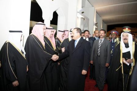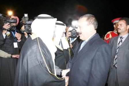 صنعاء/سبأ:وصل فخامة الأخ الرئيس علي عبدالله صالح رئيس الجمهورية مساء أمس إلى دولة الكويت الشقيقة للمشاركة في أعمال القمة العربية ( قمة التضامن مع الشعب الفلسطيني في غزة) التي تبدأ أعمالها اليوم الاثنين في الكويت وتستمر يومين.وكان في مقدمة المستقبلين لفخامة الأخ رئيس الجمهورية بمطار الكويت الدولي صاحب السمو الشيخ صباح الأحمد الجابر الصباح ، أمير دولة الكويت الذي عانق فخامة الرئيس عند سلم الطائرة عناقا أخويا حارا مرحبا به والوفد المرافق على أرض الكويت. كما كان في استقبال فخامته كبار المسؤولين في دولة الكويت وهم الشيخ نواف الأحمد الجابر الصباح ، ولي العهد و جاسم محمد الخرافي ، رئيس مجلس الأمة والشيخ مشعل الأحمد الجابر الصباح ، نائب رئيس الحرس الوطني والشيخ ناصر المحمد الأحمد الصباح ، رئيس مجلس الوزراء والشيخ جابر المبارك الحمد الصباح ، النائب الأول لرئيس مجلس الوزراء وزير الدفاع والشيخ ناصر صباح الأحمد الصباح ، وزير شؤون الديوان الأميري والشيخ الدكتور محمد صباح السالم الصباح ، نائب رئيس مجلس الوزراء وزير الخارجية وزير النفط بالوكالة و فيصل محمد الحجي نائب رئيس مجلس الوزراء وزير الدولة لشؤون مجلس الوزراء والشيخ علي جراح الصباح ، نائب وزير شؤون الديوان الأميري والوزراء والمستشارين والمحافظين وعدد من المسؤولين بالدولة وكبار القادة في الجيش والشرطة والحرس الوطني بدولة الكويت بالإضافة إلى احمد بن حلي ، نائب أمين عام جامعة الدول العربية والدكتور خالد راجح شيخ ، سفير اليمن في الكويت وأعضاء السفارة.وخلال استراحة قصيرة بمطار الكويت أدلى فخامة الرئيس بتصريح لوسائل الإعلام اليمنية والعربية والدولية أعرب فيه عن سعادته للمشاركة في هذه القمة العربية التي تحتضنها دولة الكويت الشقيقة ، وقال :” يسعدنا المشاركة في أعمال هذه القمة التي تحتضنها دولة الكويت والتي تنعقد في ظل ظروف بالغة الأهمية وفي مقدمتها ما يتعرض له أبناء الشعب الفلسطيني المحاصر في غزة من عدوان همجي ومجازر وحشية وحرب إبادة طالت الأطفال والشيوخ والنساء على أيدي قوات الاحتلال الإسرائيلي في ظل صمت دولي محزن ومشين.وأضاف:” ورغم أن هذه القمة كانت في الأساس قمة اقتصادية وتنموية إلا أن الأحداث الراهنة في غزة تفرض نفسها على جدول أعمال القمة ، مشددا فخامة الأخ الرئيس على ضرورة أن تكون هذه القمة قمة مصارحة ومصالحة وتضامن وأن تخرج بموقف عربي موحد وفاعل يكفل استخدام كافة الإمكانات والعلاقات والمصالح العربية من اجل وقف العدوان الإسرائيلي ، ومحاسبة المسؤولين عنه كمجرمي حرب أمام القضاء الدولي وإنهاء الحصار الإسرائيلي الجائر على أبناء الشعب الفلسطيني في غزة .