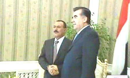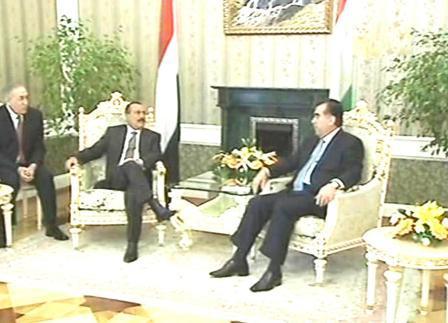ورحب فخامة الرئيس الطاجيكي امام علي رحمان بزيارة فخامة الرئيس علي عبدالله صالح رئيس الجمهورية والوفد المرافق له الى جمهورية طاجيكستان ، وقال: ”هذه الزيارة تعد خطوة هامة لتعزيز العلاقات الثنائية بين البلدين والشعبين الشقيقين”.عقب ذلك عقد الجانبان جلسة مباحثات رسمية موسعة حضرها من الجانب اليمني الوفد الرسمي المرافق لفخامة رئيس الجمهورية والذي يضم الاخوة الدكتور رشاد العليمي ، نائب رئيس الوزراء لشؤون الدفاع والأمن والدكتور أبوبكر القربي ، وزير الخارجية وأحمد مساعد حسين وزير شؤون المغتربين ونعمان الصهيبي وزير المالية وأمير العيدروس وزير النفط والمعادن ومحمد صالح الهلالي ، سفير اليمن لدى موسكو ومطهر الحجري ، عضو مجلس النواب.كما حضرها من الجانب الطاجيكي السيد همزة خان ظريفي ، وزير الخارجية و السيد أركان رحمة الله مستشار الرئيس للشؤون الخارجية وسفر علي نجم الدين ، وزير المالية وشير علي جول، وزير الطاقة وزهروف شكر جول، وزير العمل والشؤون الاجتماعية ونصرة الله سليموف ، وزير الصحة وعبد الجبار رحمانوف ، وزير التعليم وفاروق حمد علييف ، رئيس هيئة الاستثمار وعبدالله الدوشيف ، النائب الأول لوزير الخارجية وعدد من المسؤولين الطاجيك.وفي مستهل الجلسة تحدث فخامة الرئيس الطاجيكي حيث رحب بفخامة الاخ الرئيس والوفد المرافق له وقال: “نحن سعداء وأرحب بكم وأتمنى لكم اقامة طيبة في بلدكم طاجيكستان ونحن بلدان شقيقان وتربطنا علاقات تاريخية قديمة وعلينا أن ندفع بهذه العلاقات كي تتلاءم مع روح العصر الحالي وبما يحقق المصالح المشتركة لبلدينا الشقيقين .وتحدث فخامة الاخ الرئيس على عبد الله صالح ، حيث عبر عن سعادته بزيارة طاجيكستان والتعرف على ملامح النهضة العمرانية والاقتصادية التي تحققت في ظل قيادة الرئيس امام علي رحمان ، وقال:” هناك كثير من الروابط التي تربط بين بلدينا الشقيقين ونحن نشعر بامتنان كبير لحسن الاستقبال وكرم الضيافة الذي شعرنا به منذ وصولنا إلى هذا البلد الشقيق”.وأضاف:” نحن ننظر بإعجاب كبير إلى ما تحقق في عهد فخامة الرئيس امام على رحمان على صعيد الامن والاستقرار وبناء الدولة الحديثة التي بنيت من الصفر وهي دولة تعتمد على نفسها وحققت الشيء الكثير خاصة بعد انهيار الاتحاد السوفيتي وفي مقدمتها إنهاء الحرب الأهلية التيحدثت في طاجيكستان.وعلى الصعيد الثنائي اشار فخامته إلى ان هناك ثوابت سياسية قوية ستعكس نفسها على مؤسسات الدولتين ونستطيع من خلالها التحرك على الصعيد السياسي والثقافي كما ستعكس نفسها على مختلف العلاقات بين البلدين وتعزيز مواقفهما في المحافل الدولية طالما والإرادة السياسية موجودة ، مؤكدا أهمية تبادل الزيارات والتحرك على كافة المستويات للوصول إلى شراكة حقيقية طالما وجدت هذه الإرادة السياسية لدى قيادة البلدين الشقيقين ، مشيرا الى انه سيتم تشكيل لجنة مشتركة يمنية ــ طاجيكية برئاسة وزيري الصناعة والتجارة في البلدين . من جانبه اشار الرئيس الطاجيكي إلى انه خلال زيارته لليمن تم التوقيع على عدة اتفاقات لتعزيز العلاقات الثنائية بما فيها مجالات التعاون المشترك بين البلدين ، وقال :” نحن في طاجيكستان مستعدون لتوقيع العديد من الاتفاقات من اجل الدفع بمجالات الاستثمار والتعاون الطبي بين البلدين.واوضح أن التعاون في المجال الطبي سيفتح أبوابا واسعة لتقديم المساعدات الطبية للشعب اليمني ، وقال:”نحن الآن في بداية المشوار ونؤكد استعدادنا لتأهيل الكوادر اليمنية في الجامعات الطاجيكية بمجال الطب ، وعلى الجهات المعنية اتخاذ ترتيباتها اللازمة لتحقيق هذه الغاية.