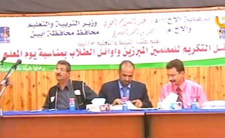 حفل خطابي وفني وتكريمي ومعرض للوسائل التعليمية بيوم المعلم في أبين
