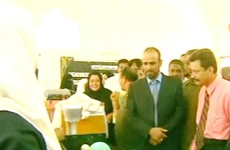 من جانب آخر قام الأخ المحافظ ومعه عدد من المسؤولين بافتتاح معرض الوسائل التعليمية التي نظمته مدرسة خوله للبنات بزنجبار وقد أحتوى المعرض على عدد من الوسائل التعليمية والنماذج العلمية من إنتاج وإبداع طالبات المدرسة .. وفي سجل الزيارات سجل المحافظ كلمة أشاد فيها بالجهود التي بذلت لقيام هذا المعرض وما احتواه من إبداعات مؤكدا دعم السلطة المحلية لكل النشاطات التربوية والتعليمية.
