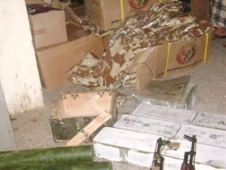 وتحوي الشحنة ملابس عسكرية وذخيرة وأسلحة وهي موزعة على النحو الآتي: 71 بدلة عسكرية - 59 برية - 58 بيادات - 71 قايش عسكري ( حزام ) - 65 شراباً عسكريوتحتوي الأسلحة التالية - 4500 طلقة ذخيرة آلي - 8000 طلقة شيكي - 20 بازوكة.الشيخ فهد مفتاح دهشوش وكيل محافظة حجة عبر عن شكره للعيون الساهرة من رجالات الأمن والقوات المسلحة الشرفاء وكذا اللجان الشعبية من أبناء المحافظة في جميع مديريات المحافظة لدورهم الهام في إحباط مخططات التخريب التي تستهدف المحافظة.