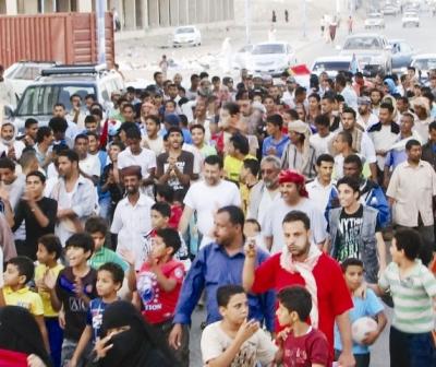 عدن / 14أكتوبر : انطلقت أمس مسيرة شعبية جنوبية من ساحة الشهداء في المنصورة استجابة للدعوة التي أعلنها شباب « ثورة 16 فبراير » الجنوبية بعدن . وقد طافت المسيرة عدة مناطق منها المنصورة والقاهرة والشيخ عثمان وحي عبدالعزيز والسكنية ومن ثم عادت إلى ساحة الشهداء، ورافقت المسيرة فرقة نحاسية رددت الأغاني الثورية الجنوبية .