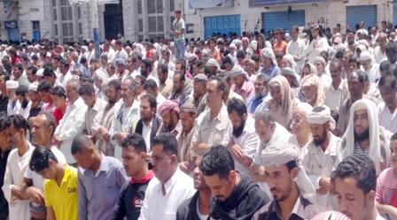 عدن / 14أكتوبر : أحياء الآلاف من أبناء الجنوب أمس الجمعة فعالية “جمعة الوفاء لباعوم” في شارع مدرم الرئيسي بمديرية المعلا بعدن .وسار الآلاف من المشاركين في الفعالية الاحتجاجية في مسيرة حاشدة انطلقت من وسط شارع المعلا الرئيسي وهم يرفعون الأعلام الجنوبية وصور ضحايا حركة الاحتجاجات في الجنوب .واستمع المشاركون في فعالية الجمعة لخطبتي صلاة الجمعة اللتين شدد فيهما الخطيب الشيخ حسين بن شعيبعلى سلمية حركة الاحتجاجات في الجنوب مترحما على ضحايا هذه الاحتجاجات .وأشاد بن شعيب بصمود وشجاعة الآلاف من نشطاء حركة الاحتجاجات الجنوبية منذ العام 2007 الذين قال إنهم تعرضوا لأعمال اعتقال دامت بحق كثيرين سنوات طويلة .