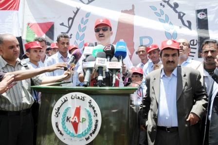 صنعاء / سبأ:قال رئيس جمعية كنعان لفلسطين يحيى محمد عبد الله صالح: أن الأسرى الفلسطينيين ليسوا لوحدهم بل إن كل أحرار العالم ومحبي الديمقراطية والحرية والعدالة معهم من أجل تأمين الحرية.وأشار رئيس جمعية كنعان لفلسطين يحيى محمد عبدالله صالح في الكلمة التي القاها خلال المهرجان الذي أعقب المسيرة الجماهيرية، التي نظمتها جمعية كنعان لفلسطين أمس بصنعاء بمناسبة الذكرى الـ64 للنكبة إلى أن الأسرى الفلسطينيين أنهوا يومهم الـ 28 وبعضهم تجاوز الـ 70 يوما من الإضراب المفتوح عن الطعام حتى تم تحقيق مطالبهم المشروعة على درب الحرية والعدالة وانصياع إدارة السجون الإسرائيلية بالموافقة على مطالبهم المشروعة.وانطلقت المسيرة الجماهيرية من خيمة المقاومة إلى مقر الأمم المتحدة يتقدمها رئيس جمعية كنعان لفلسطين يحيى محمد عبدالله صالح والسفير الفلسطيني بصنعاء باسم الأغا وعدد من قيادات منظمات المجتمع المدني مرددة الشعارات الداعية إلى إطلاق اﻷسرى الفلسطينيين وإقامة الدولة الفلسطينية المستقلة وعاصمتها القدس الشريف.[c1]* التفاصيل راجع صفحة متابعات اخبارية[/c]