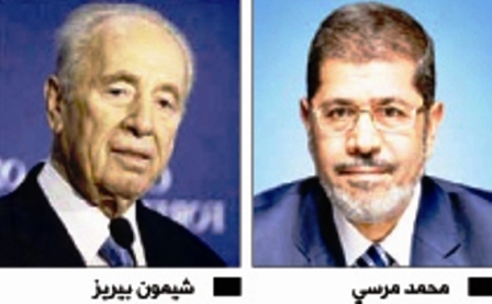 وكان بيريز، الحائز على جائزة نوبل للسلام، بعث إلى مرسي، رسالة تهنئة عقب فوزه في انتخابات الرئاسة الشهر الماضي، أعرب فيها عن أمله في «استمرار التعاون معي استنادا إلى معاهدات السلام الموقعة بيننا قبل أكثر من ثلاثة عقود، والتي التزمنا بالحفاظ عليها وتطويرها من أجل الأجيال القادمة من الشعبين».كما بعث بيريز إلى مرسي برسالة ثانية حملت تهنئة ببداية شهر رمضان الأسبوع الماضي، بحسب ما أفاد مكتب الرئاسة الاسرائيلية.وقال المكتب إن مرسي رد برسالة جاء فيها: «تلقيت بعميق الشكر تهنئتكم على قدوم شهر رمضان المبارك».