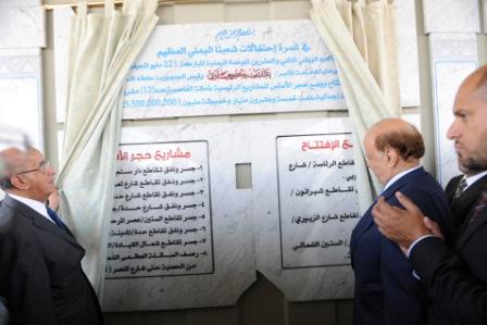 وأكد الأخ الرئيس ان مؤتمر الحوار الوطني الشامل الذي انطلقت أعماله في 18 من مارس الجاري كما هو محدد له سيمثل جوهر التغييــر وأســـاســـــه حيـــث ستمثل مخرجاته منطلقا استراتيجيا وتاريخيا جديدا لطي صفحة الماضي وقيام الدولـــة المدنيـــة الحديثـــــة على اساس الحكم الرشيد والحرية والعدالة والمساواة والنظام والقانون.هذا وقد منح الأخ الرئيس عبدربه منصور هادي رئيس الجمهورية الأخ عبد اللطيف الحمد رئيس مجلس إدارة الصندوق العربي للإنماء الاقتصادي والاجتماعي المدير العام للصندوق وسام الوحدة تقديرا للجهود العظيمة والطيبة التي يبذلها في سبيل مساعدة اليمن في الكثير من المجالات التنموية والاقتصادية .بعد ذلك قام الأخ الرئيس عبدربه منصور هادي ومعه رئيس مجلس إدارة الصندوق العربي المدير العام عبداللطيف الحمد ووزير التخطيط والتعاون الدولي الدكتور محمد السعدي بوضع الحجر الأساس عند جسر تقاطع الرئاسة لـ 12 مشروعا في مجالات الجسور والأنفاق والجولات وذلك بهدف تخفيف الازدحام المروري وتوسيع الطرقات وعمل انفاق مرورية جديدة ومشروعات شبكة الصرف الصحي ومشروع رصف السائلة بتكلفة إجمالية تبلغ 40 مليار ريال.[c1]* التفاصيل راجع صفحة متابعات اخبارية[/c]