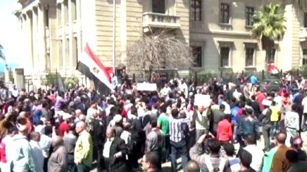 تظاهرات قرب مسجد القائد إبراهيم للتنديد بحكم جماعة الإخوان المسلمين