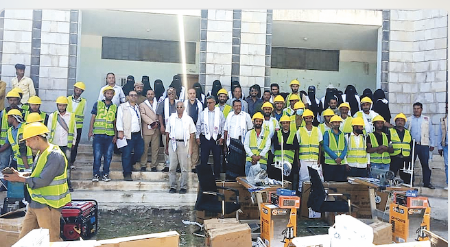 دشن الأمين العام للمجلس المحلي بالضالع العميد علي العود توزيع حقائب نشاط التدريب المهني التي تنفذها جمعية رعاية الأسرة بتمويل من وزارة الخارجية وشؤون الكومنولث ضمن مشروع بناء القدرات على الصمود في البلاد.