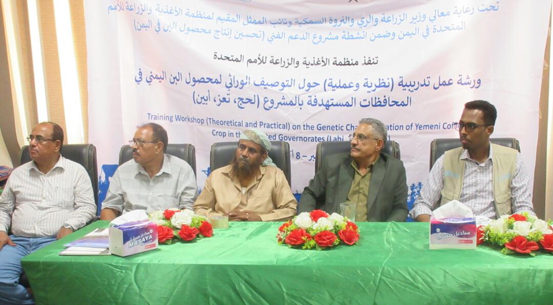 اختتمت أمس في العاصمة المؤقتة عدن فعاليات ورشة التوصيف الوراثي لمحصول البن اليمني، التي نظمتها منظمة الأغذية والزراعة للأمم المتحدة (الفاو) بالتنسيق مع وزارة الزراعة والري والثروة السمكية والهيئة العامة للبحوث والإرشاد الزراعي، وبرعاية وزير الزراعة والري والثروة السمكية اللواء سالم عبدالله السقطري، ونائب الممثل المقيم لمنظمة الفاو في اليمن، وذلك في إطار مشروع الدعم الفني لتحسين وإنتاج البن.