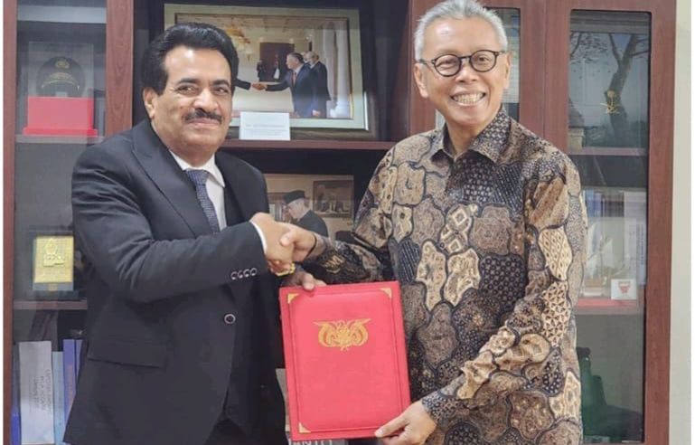 سلم سالم بلفقيه، اليوم، مدير عام البروتوكول والشؤون القنصلية بوزارة الخارجية الإندونيسية، السفير أندي رحميانتو، نسخة من أوراق اعتماده سفيراً للجمهورية اليمنية لدى إندونيسيا.