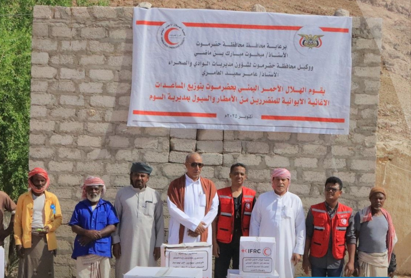 قدم فرع جمعية الهلال الأحمر اليمني بحضرموت، اليوم، مساعدات ايوائية لـ 163 أسرة نازحة بمديرية السوم المتضررة من الامطار والسيول، التي شهدها وادي حضرموت خلال شهر أغسطس الماضي.