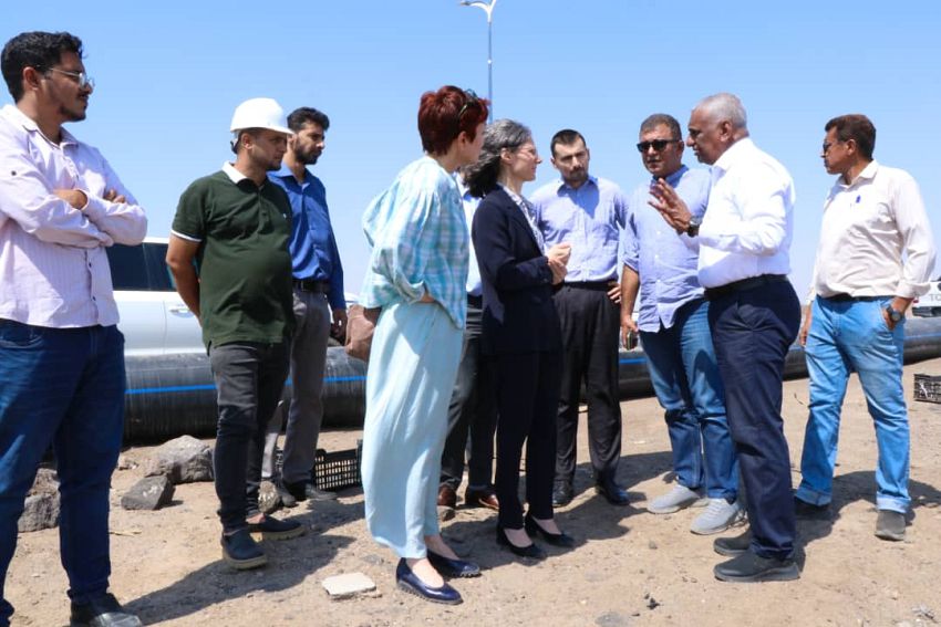 تفقد مدير عام المؤسسة المحلية للمياه والصرف الصحي بمحافظة عدن، المهندس محمد باخبيرة، والسفيرة الفرنسية لدى اليمن كاثرين قرم كمون، والمدير القطري لمنظمة "تراينجل" الإنسانية، سند أنيس، سير تنفيذ مشروع إعادة تأهيل أجزاء من خط الضخ الرئيسي في الخط البحري القادم من بئر أحمد.
