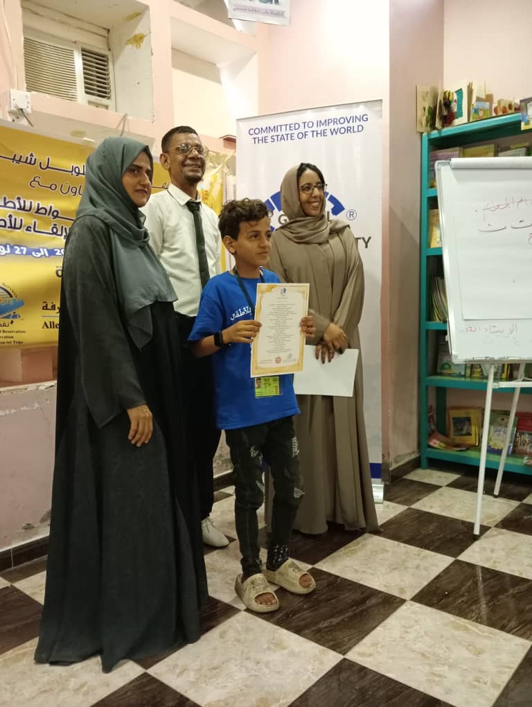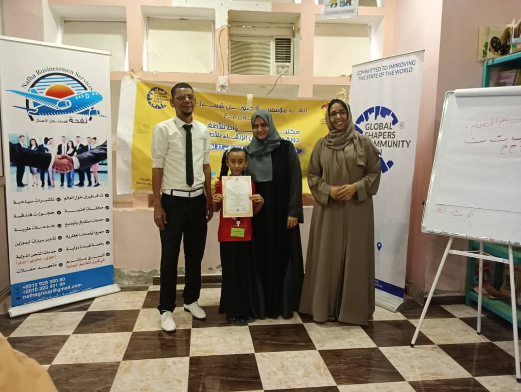 وتابعت حديثها: "وقمنا بتوزيع الشهادات لكافة الأطفال المشاركين، تكريماً لجهودهم وتفاعلهم المتميز خلال أيام التدريب لاننا في مؤسسة جلوبل شيبرز نؤمن بأن الاستثمار الحقيقي يبدأ من الطفولة. إن تمكين أطفال عدن من مهارات التواصل والتحدث بطلاقة، وتشجيعهم على القراءة، هو حجر الأساس لبناء جيل واعٍ ومثقف وقادر على القيادة في المستقبل. سعداء جداً بهذا التعاون المثمر مع مكتبة مسواط العريقة وسعداء جداً بالتنسيق مع مركز الليم للمعرفة في الشارقة هذا الصرح المتميز لنشر الثقافه والاهتمام بالقراءة بقيادة سعادة الدكتور راشد الليم وقد حصل الأطفال المشاركون على شهادات مقدمة من المركز نفسه .