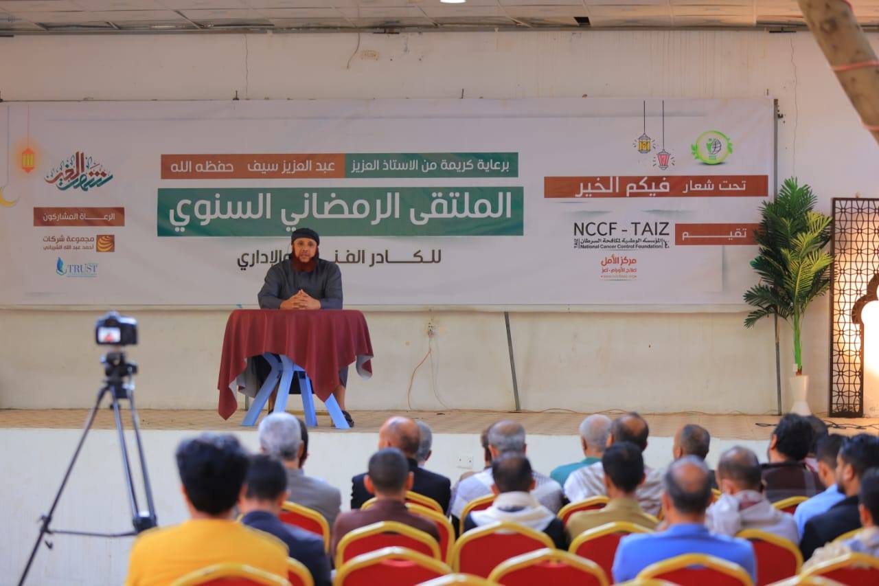 تعز/14أكتوبر/خاص:نظمت المؤسسة الوطنية لمكافحة السرطان في محافظة تعز حفلها الرمضاني السنوي للكادر الفني والإداري، في أمسية رمضانية مفعمة بالألفة والمحبة، وذلك برعاية كريمة من رجل الأعمال عبد العزيز سيف، ومجموعة شركات أحمد عبدالله الشيباني، وترست يونيفرسال للأدوية والمستلزمات الطبية. وقد وجه رئيس مجلس أمناء المؤسسة منير أحمد هائل في كلمة له (مباشر عبر الإنترنت) الشكر والتقدير لكل الجهود التي يقدمها الكادر في خدمة مرضى السرطان، مؤكدا متابعته بشكل مستمر لكل ما تواجهه المؤسسة والمركز، والسعي الحثيث لإيجاد الحلول وتحسين الخدمات وتطويرها بما يحقق الأهداف الجليلة للمؤسسة. وفي كلمة للمؤسسة خلال الحفل، تم التأكيد على أن هذا اللقاء يأتي تجسيداً لثقافة المؤسسة التي لا تهتم فقط بالجانب المهني، بل تولي عناية خاصة بالجانب الإنساني والاجتماعي لعامليها، معتبرة إياهم الأسرة الواحدة التي تستمد قوتها من تماسكها.من جهتهم، عبر رعاة الحفل عن سعادتهم بهذه الرعاية التي تأتي في إطار دعمهم المتواصل للمؤسسة الوطنية لمكافحة السرطان بتعز، وإيماناً منهم بأهمية التكامل المجتمعي مع هذه المؤسسة الحيوية التي تقدم خدمات جليلة للمجتمع.وقد نال الحفل استحسان جميع الحاضرين الذين ثمنوا هذه المبادرة التي تسهم في رفع الروح المعنوية للعاملين في المجال الصحي، وتذكرهم بأهمية الرعاية النفسية والدعم المعنوي لمن يقدمون الرعاية للآخرين.ويذكر أن المؤسسة الوطنية لمكافحة السرطان بمحافظة تعز تواصل جهودها الدؤوبة لتقديم الخدمات الطبية والعلاجية لمرضى السرطان، في ظل ظروف استثنائية، معتمدة في ذلك على دعم أبناء المجتمع ورجال الأعمال والشركات المسؤولة اجتماعياً.وشهد الحفل حضوراً لافتاً لكوادر المؤسسة من أطباء، وممرضين، وإداريين، إلى جانب عدد من الشخصيات الاجتماعية البارزة، وفي مقدمتهم الشيخ علي القاضي، مما أضفى على الأمسية طابعاً مميزاً من الوقار والبهجة.