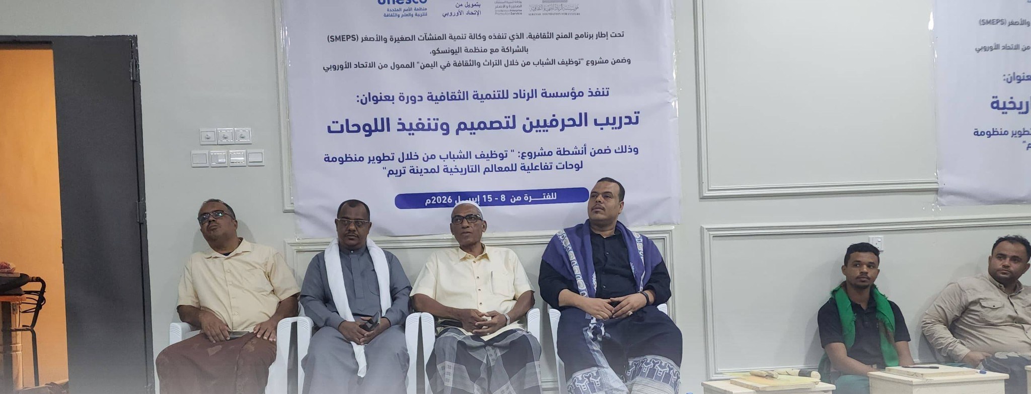 سيئون /14أكتوبر:بدأت بمدينة تريم محافظة حضرموت، اليوم، دورة تدريبية للحرفيين في تصميم وتنفيذ اللوحات التفاعلية، تنفذها مؤسسة الرناد للتنمية الثقافية، ضمن مشروع "توظيف الشباب من خلال تطوير منظومة لوحات تفاعلية للمعالم التاريخية" بالشراكة مع وكالة تنمية المنشآت الصغيرة والأصغر (SMEPS)، وبتمويل من الاتحاد الأوروبي ومنظمة اليونسكو.وتهدف الدورة، التي تستمر سبعة أيام، إلى تأهيل عدد من الحرفيين الشباب لإنتاج لوحات تعريفية خشبية مزودة بتقنية (QR Code)، تسهم في توثيق المعالم التاريخية بمدينة تريم وتعزيز التجربة السياحية.وأكد رئيس المؤسسة، أحمد باحمالة، أهمية المشروع في الحفاظ على الموروث الثقافي والبصري للمدينة، مستعرضا أهداف المشروع في تطوير لوحات تعريفية ذكية تربط الزائر بمنصات معلوماتية متكاملة.*سبأنت