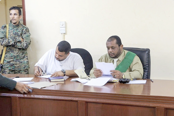 عقدت محكمة صيرة الابتدائية أولى جلساتها العلنية برئاسة القاضي نزار السمان، وبحضور رئيس نيابة استئناف جنوب عدن القاضي وضاح باذيب، وعضو النيابة القاضي عبير فهيم، وأمين سر الجلسة زكي باسل، وذلك للنظر في القضية الجنائية رقم (90) لسنة 1447هـ.